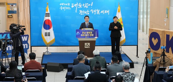 김영록 전남지사는 오늘 오전 순천 동부지역본부에서 기자회견을 열고 2026년을 ‘동부권 대도약의 원년’으로 선포했다고 밝혔습니다.