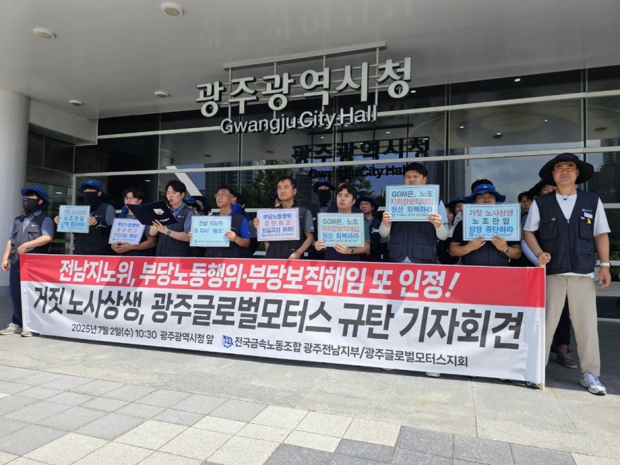 노조는 광주시청 앞에서 기자회견을 열고 "GGM은 김 지회장의 보직해임을 원상회복하고 노조 활동을 보장하라"고 요구했습니다.