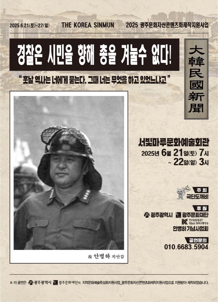 1980년 5·18 민주화운동 당시 시민을 향한 발포 명령을 거부한 고 안병하 치안감의 이야기를 다룬 연극 '경찰은 시민을 향해 총을 겨눌 수 없다'가 내일(21일)과 모레(22일) 광주 서빛마루문화예술회관에서 관객들을 만납니다.