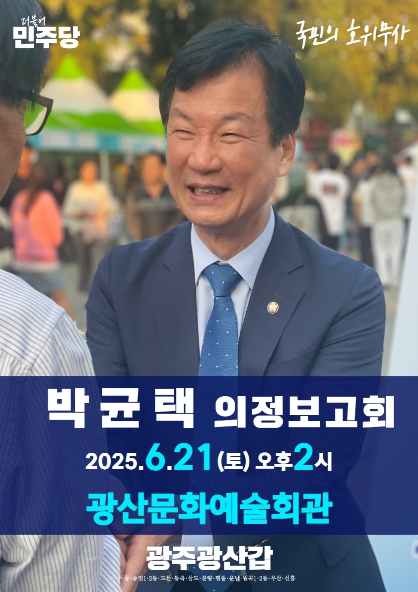 광주 광산갑 더불어민주당 박균택 국회의원이 오는 21일 의정보고회를 개최합니다.