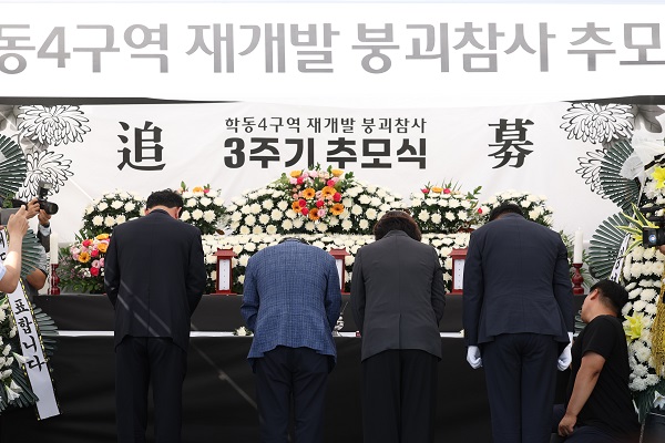 한편 4년 전 발생한 학동 붕괴참사는 당시 철거 중이던 재개발 4구역 5층 건물이 주저앉으면서 시내버스를 덮쳐 승객 17명 중 9명이 숨지고 8명이 크게 다친 사건입니다.
