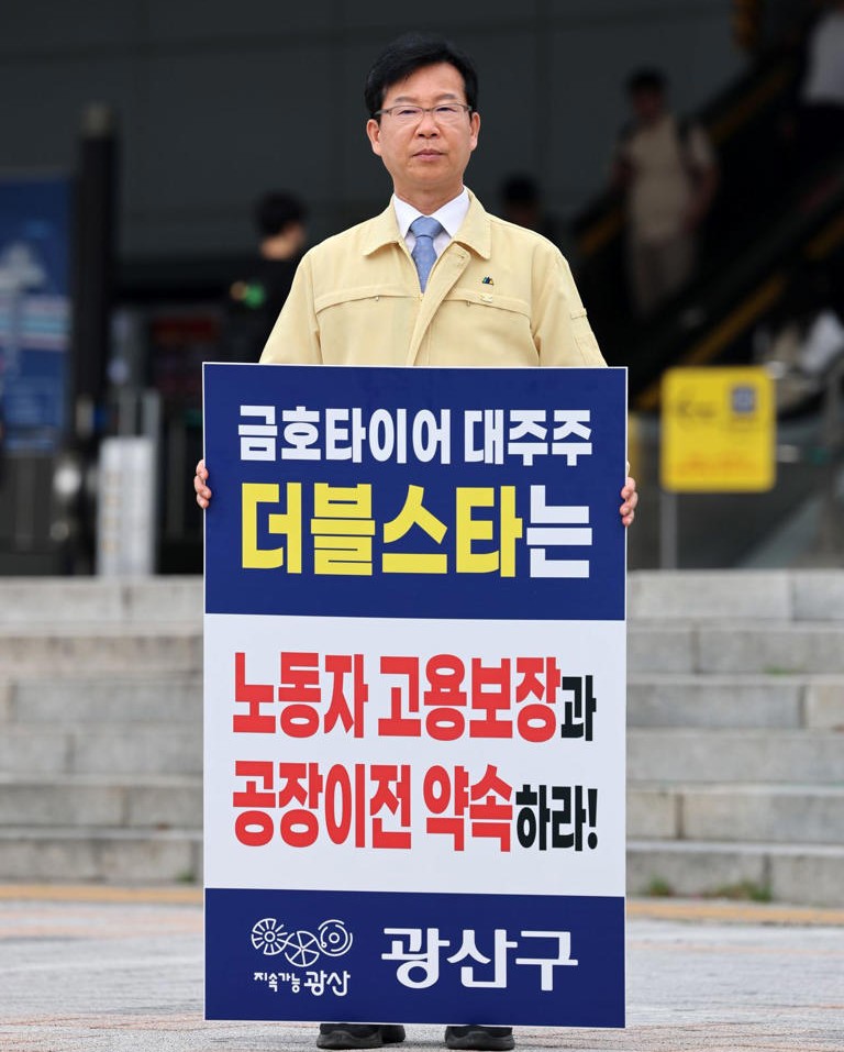 기아차 광주공장 노조위원장 출신인 박 구청장은 대주주인 더블스타가 입장을 내놓을 때 까지 지속적인 1인 시위에 나설 계획이라고 밝혔습니다.