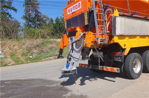 전남 지역에 구제역 발생이 끊이지 않자, 도로용 제설차와 농업용 드론까지 방역에 투입됐습니다.