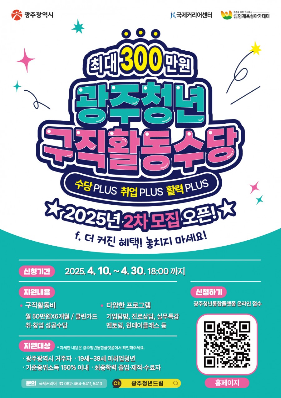 광주시가 올해 광주 청년구직활동수당 지원’ 2차 참여자 830명을 모집합니다.