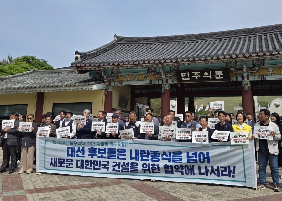 광주 시민사회단체가 더불어민주당 이재명 대선 후보에게 "내란 종식과 새로운 대한민국 건설을 위한 사회대개혁 요구안을 수용하라"고 촉구했습니다.