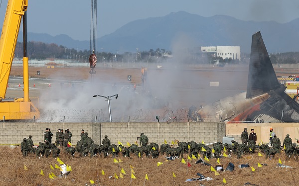 전남소방본부에 따르면 오늘 오후 2시쯤 무안국제공항 내 사고 기체 주변 잔해에서 화재가 발생했지만 1분여만에 소방대원에 의해 진화됐습니다.
