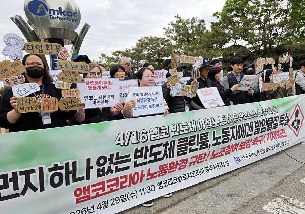 노조는 오늘 광주 북구 앰코코리아 사업장 앞에서 기자회견을 열고 “반도체 공장은 깨끗해 보이지만 실제로는 화학물질에 노출된 환경”이라고 주장했습니다.