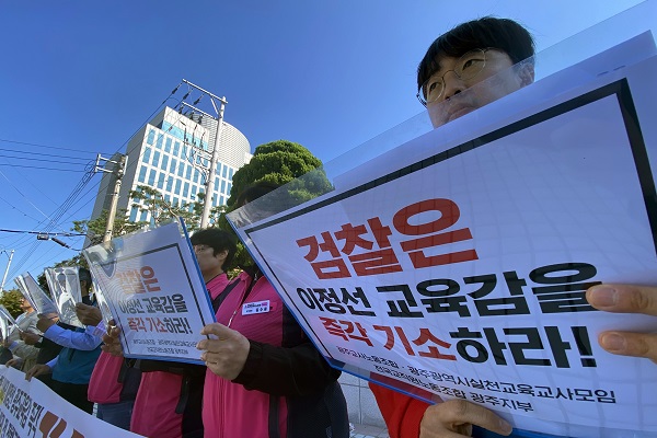 전교조 광주지부 등 교사단체가 이정선 광주시교육감을 즉각 기소하라고 요구했습니다.