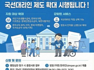 전라남도가 행정심판을 청구했지만 경제적 사정으로 변호사를 선임하지 못한 도민을 위해 국선대리인 지원을 확대합니다. ..