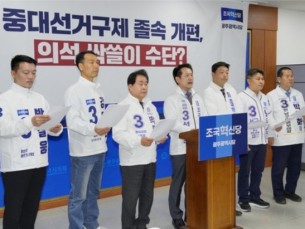 조국혁신당 광주시당은 오늘 "더불어민주당이 중대선거구를 졸속 개편한 데에 이어 '패자부활전' 방식까지 동원하며 전원 공천..