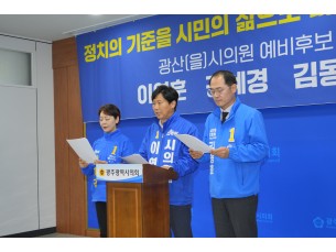 더불어민주당 광주 광산을 선거구 시의원 선거에 출마한 이영훈·강혜경·김동호 예비후보는 오늘 광주시의회 브리핑룸에..