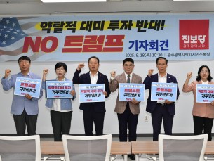 진보당 광주시당은 오늘 광주시의회 시민소통실에서 기자회견을 열고 "약탈적 대미 투자를 거부하는 것이 국익"이라며 재협상을..