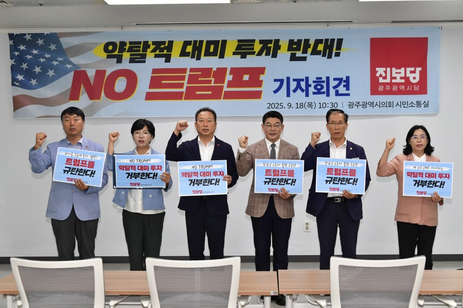 진보당 광주시당은 오늘 광주시의회 시민소통실에서 기자회견을 열고 "약탈적 대미 투자를 거부하는 것이 국익"이라며 재협상을 요구했습니다.