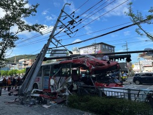 광주 도심에서 시내버스가 승합차와 충돌한 뒤 전신주를 들이받는 사고가 발생했습니다.오늘 오전 9시 50분쯤 광주 남구 주월..