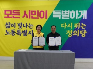 정의당 강은미 전남광주통합특별시장 후보는 오늘 선거사무소에서 민주노총 공공운수노조 광주전남지역본부와 정책협약식을 개최하고..