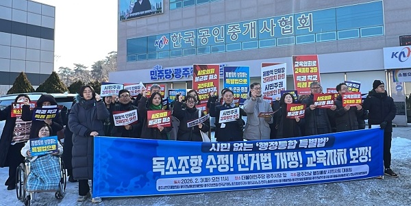 광주시민단체협의회 등 11개 단체가 참여한 시민대응팀은 오늘 더불어민주당 광주시당 앞에서 기자회견을 열고 "특별법안이 중앙정부 권한 이양만 강조하고 지방 권력을 시민이 통제할 장치는 미흡하다"고 밝혔습니다.