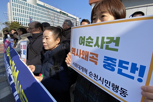 광주·전남 시민사회단체가 여순사건 진상규명 과정에서 미신고 집회를 주도한 혐의로 1심에서 유죄를 선고받은 공익활동가에 대해 무죄를 주장했습니다.