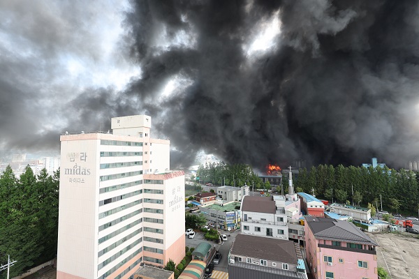 소방당국에 따르면 화재가 발생한 정련 공정 건물의 2층과 3층 바닥이 약 50cm가량 내려앉는 현상이 포착돼 안전을 위해 대원 전원을 철수시키고 내부 진입을 통제했습니다.