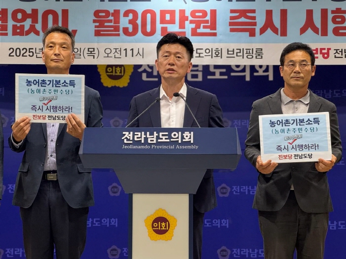진보당 전남도당은 오늘(4일) 도의회에서 기자회견을 열고 농어촌 기본소득 전면 실시를 촉구했습니다.
