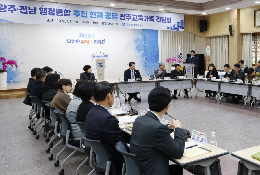 광주시교육청은 오늘(14일) 광주·전남 행정통합 추진과 관련해 교육가족 간담회를 열고 일선 학교와 교원단체와 교원노조 등과 의견을 나눴습니다.