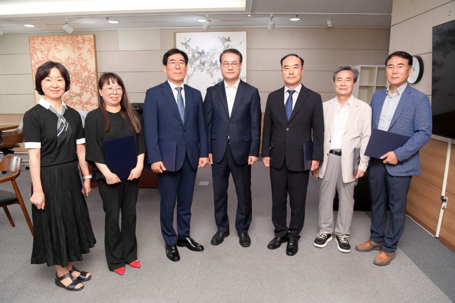 송 원장의 임기는 2027년 8월 24일까지 2년간이지만 임명권자인 강기정 시장이 내년 6월 지방선거에서 재선하지 못하면 강 시장의 임기와 일치해 1년으로 줄어듭니다. (사진설명=광주인재평생교육진흥원 송형길(사진 왼쪽에서 세번째) 신임 원장)