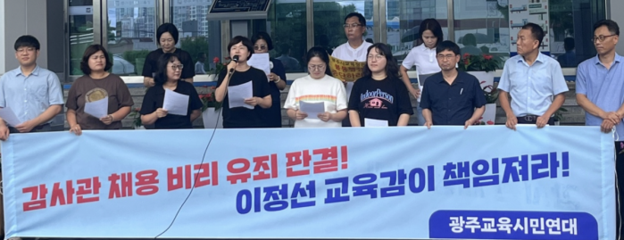 광주시교육청 감사관 채용비리 유죄 판결과 관련해 광주지역 교육·시민사회단체가 이정선 교육감의 책임과 결단을 촉구하고 나섰습니다.