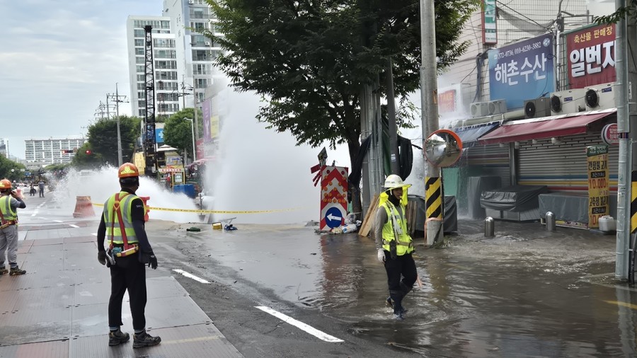 이 사고로 도로 밖으로 물이 흘러나오면서 이 일대가 침수 피해가 발생했습니다.