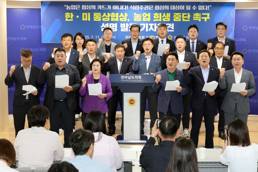 전남도의회 "한미 통상협상, 농업이 희생양 되면 안 돼"