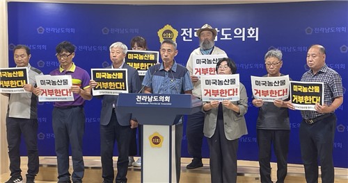 전국농민회총연맹 광주·전남연맹은 오늘 전남도의회에서 기자회견을 열고 정부는 미국산 농산물 수입 확대 계획을 중단하라고 촉구했습니다.