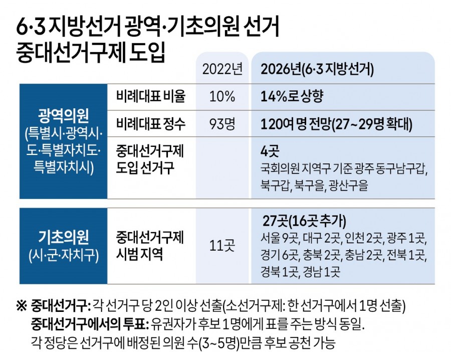 광주지역 광역의원 선거에 처음 시범 도입되는 중대선거구 4곳을 둘러싸고, 선정 기준이 명확히 제시되지 않아 논란이 일고 있습니다.