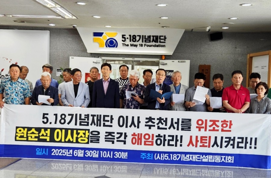 5·18 기념재단 설립동지회는 오늘(30일) "기념재단 이사 선출 과정에서 특정 후보를 도운 원순석 이사장을 규탄한다"고 밝혔습니다.