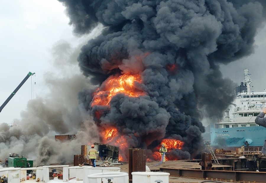 소방 당국은 배관 절단 작업을 하던 도중 불씨가 수리를 위해 정박 중인 선박으로 튄 것으로 보고 화재 원인 등을 조사할 예정입니다.