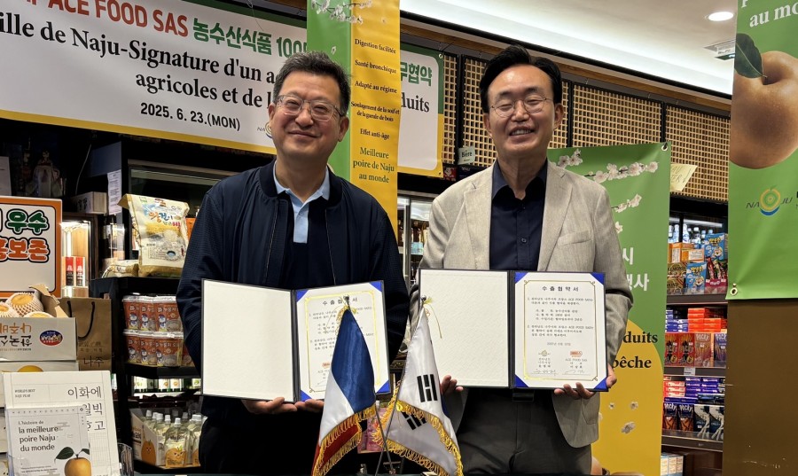 나주시가 프랑스 현지 유통업체와 100만 달러 규모의 농수산식품 수출협약을 체결하며 유럽 시장 판로 진출을 본격화했습니다.