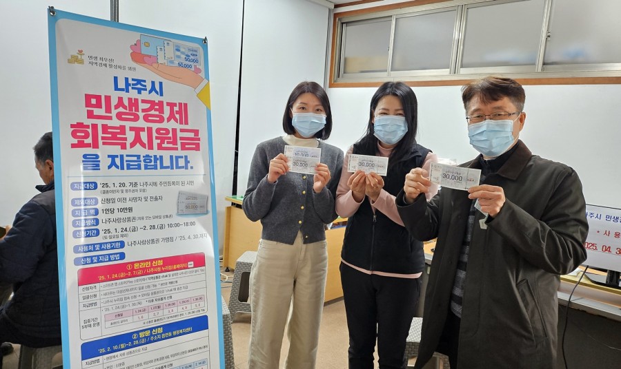 민생경제회복지원금은 112억원 규모로, 전라남도 시 단위 지자체 중 유일하게 지난 1월 모든 시민에게 1인당 10만원을 지역화폐인 나주사랑상품권(모바일·지류형)으로 지급했습니다.