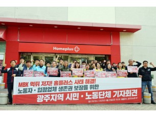 홈플러스 노조 등 광주지역 시민노동단체들은 오늘(25) 광산구 홈플러스 광주하남점 앞에서 기자회견을 열고..