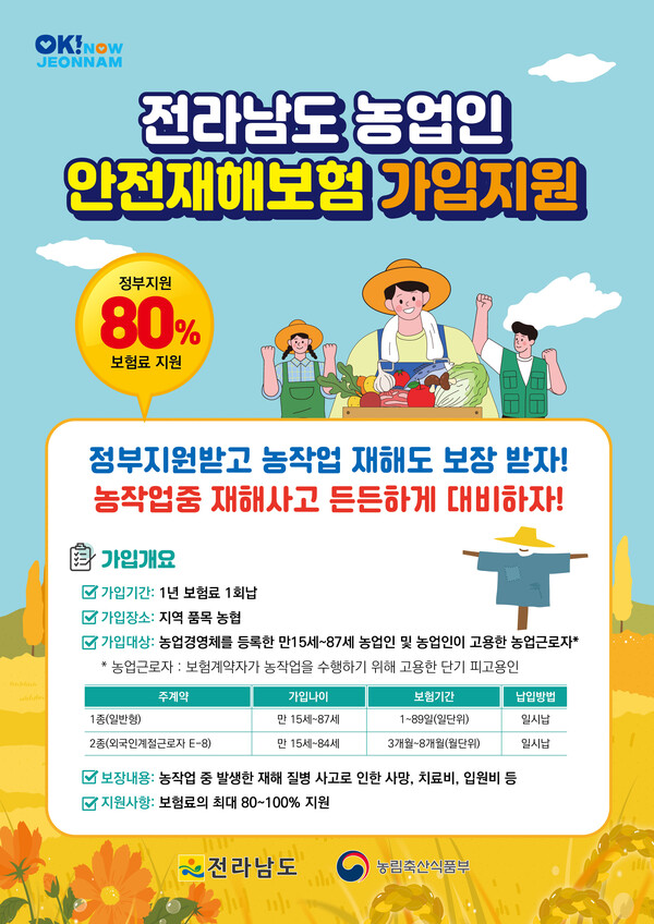 전라남도는 본격적인 영농철을 맞아 농업인의 안전을 위해 ‘농업인안전재해보험’ 가입을 당부했습니다.