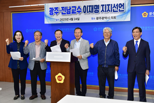 광주·전남 지역 대학교수 301명이 광주시의회에서 더불어민주당 이재명 경선 후보에 대한 지지를 선언했습니다.