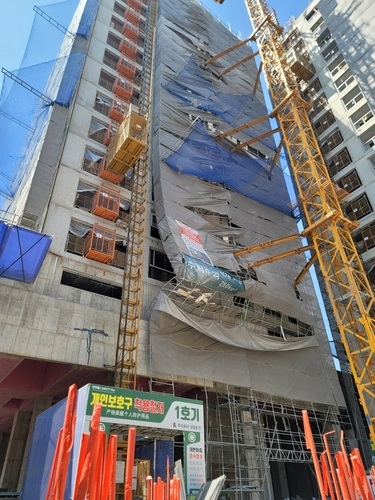 광주 화정동 아파트 신축 공사장 가설물 휘어져