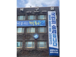 문인 광주 북구청장이 자신의 명의로 청사 외벽에 내걸었던 윤석열 대통령 파면 촉구대형 현수막을 오늘(4일) 열린 헌법재판소..