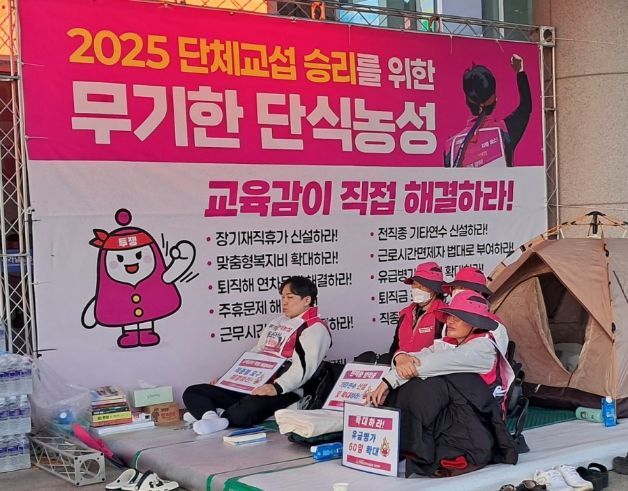 이들은 "노조 지부장의 단식과 노조의 농성이 장기화하고 있다" 며 "도교육청의 책임있는 태도와 교육감의 결단이 필요하다" 고 지적했습니다.