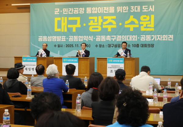 광주를 비롯해 대구와 수원 등 3개 지역 시민단체들로 구성된 공항통합이전 공동연대는 오늘 대구상공회의소에서 공동 기자회견을 열고 "정부는 공항 통합 이전 사업을 더 이상 지연하지 말고 최우선 국책사업으로 즉각 지정하고 추진하라"고 촉구했습니다.