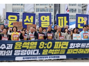 헌법재판소가 윤석열 대통령을 전원일치로 파면 결정한 데 대해 탄핵을 촉구해 온 광주·전남지역 법조계가 일제히 환영의 뜻을 ..