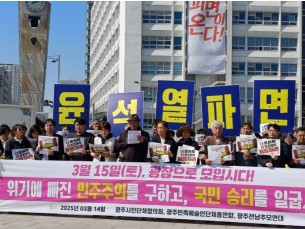 더불어민주당 소속 광주 지방의원들이 윤석열 대통령 석방과 관련해 즉시항고를 포기한 심우정 검찰총장의 사퇴를 촉구하고 나섰습..