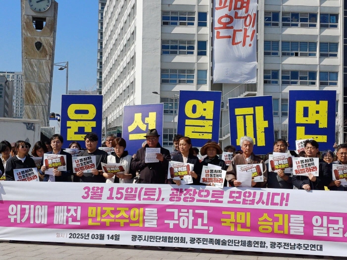 광주지역 108개 시민사회단체들로 구성된 윤석열 퇴진과 사회대개혁을 요구하는 광주비상행동은 내일(15일) 서울시청 앞에서 열리는 윤석열 파면 촉구집회에 대거 참석하는 한편 5·18민주광장에서는 광주시민총궐기대회를 개최할 계획입니다.