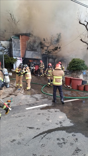 오늘 오전 9시 34분 쯤 광주 광산구 임곡동 한 주택 건물과 인근 야산에 불이 났습니다.