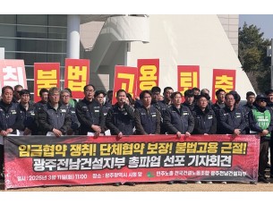 광주·전남 지역 건설 노동자들이 오는 21일 총파업 돌입을 선언해 파장이 예상됩니다. 전국건설노동조합 광주전남건설..