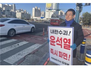 김영록 전남지사가 오늘 오전 전남도청 앞 사거리에서 윤석열 대통령 파면을 촉구하는 1인 시위를 벌였습니다. 김 ..