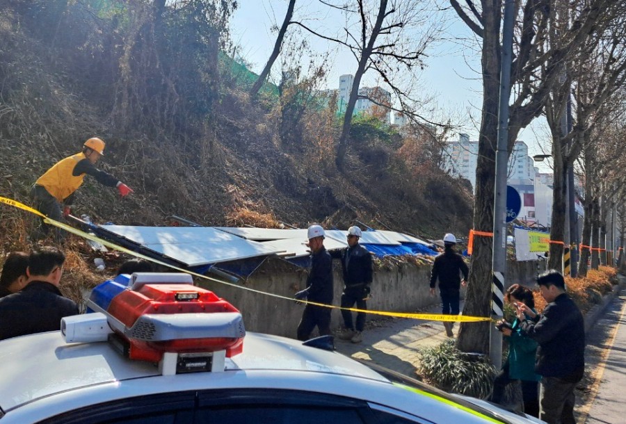 광주 진월동 공사 현장 가림막 기울어져…보행자 2명 경상