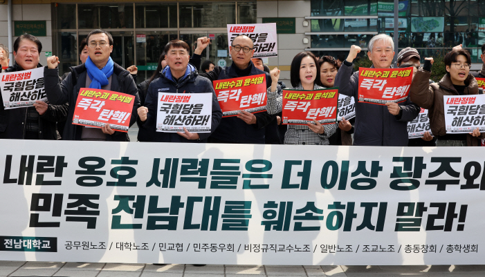 전남대 총학생회 등 9개 단체는 오늘 전남대 후문 일대에서 기자회견을 열어 "내란 옹호 세력들은 더 이상 광주와 민족 전남대를 훼손하지 말라"고 주장했습니다.