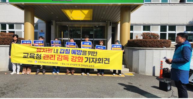 전교조 전남지부는 어제 순천과 여수 교육지원청에서 기자회견을 열고 교육 당국이 관리감독을 강화하라고 촉구했습니다.